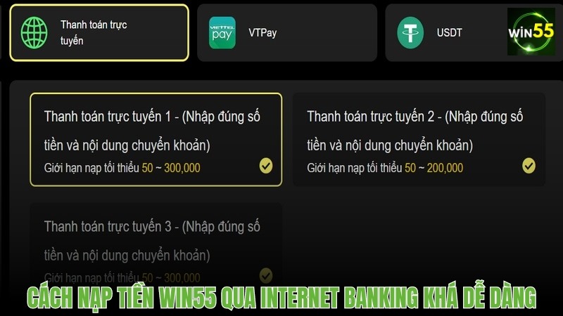 Để nạp tiền Win55 qua Internet Banking một cách dễ dàng và an toàn, bạn chỉ cần làm theo các bước hướng dẫn sau: