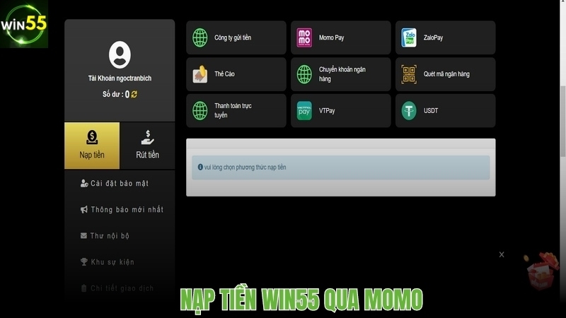 Nạp tiền Win55 qua Momo